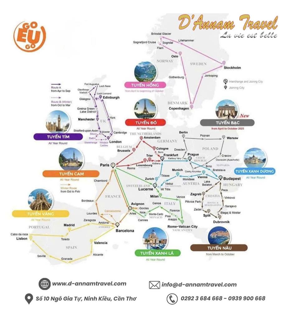 🟢 Tuyến xanh lá (Pháp - Thụy Sĩ - Ý - Vatican - Monaco)
