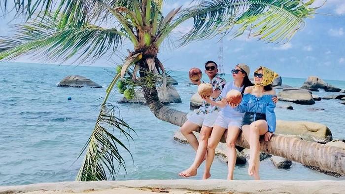 Bãi Bàng – the island’s most beautiful beach, famous for the “legendary leaning coconut tree” by the sea.
