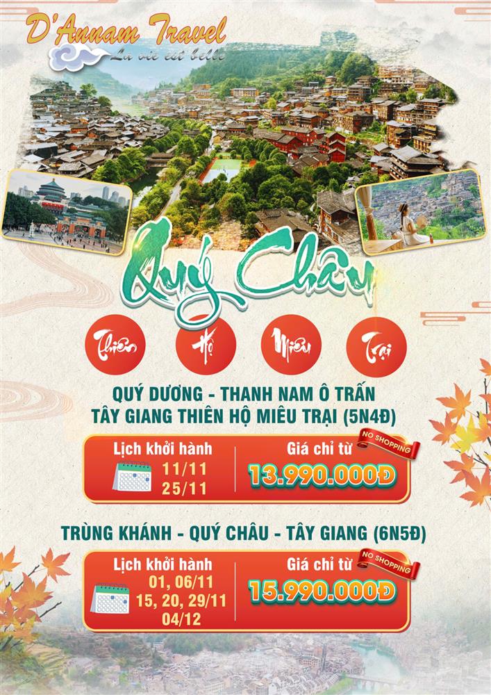 🍁 Trải nghiệm văn hóa độc đáo người Miêu tại Quý Dương – từ phong tục, kiến trúc, ẩm thực đặc sắc đến những lễ hội truyền thống đầy màu sắc.