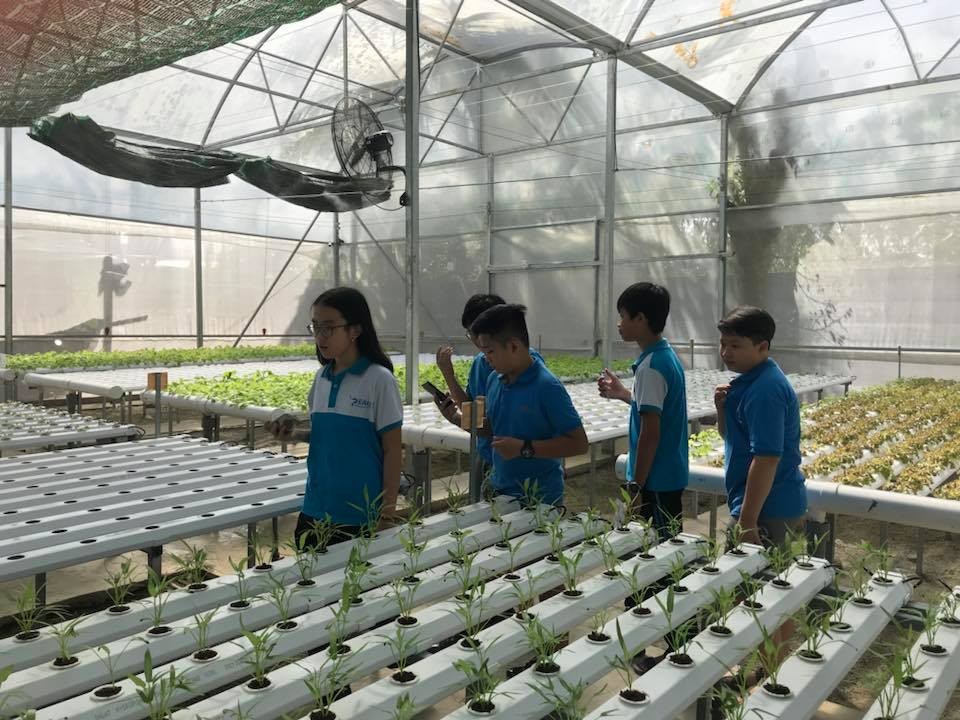 Pupils take care of tomato at Cantho Farm. Photo by Hong Nhung