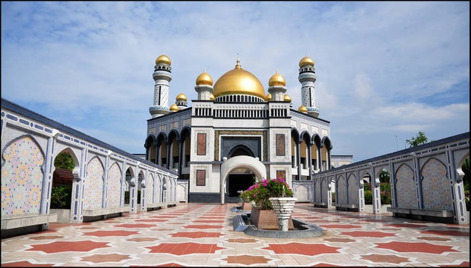 - Thánh đường Hồi giáo Jame'Asr Hassanil Bolkiah mang lối kiến trúc tinh tế và nổi bật nhất phải kể đến là những mái vòm bằng vàng ròng làm cho nhà thờ luôn nổi bật trên nền trời, bất kể là ngày hay đêm.